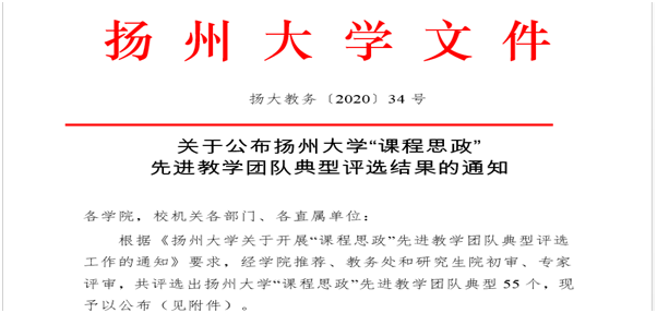物理化学课程教学团队获扬州大学“课程思政”先进 教学团队典型