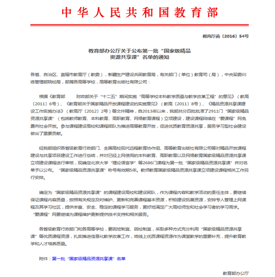 物理化学获国家级精品资源共享课程