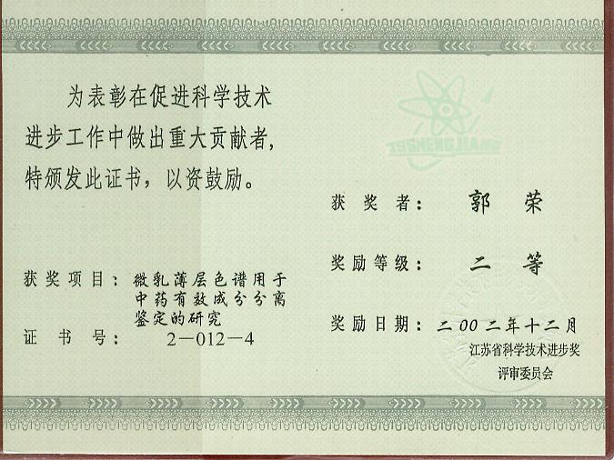 近年来,物理化学学科组取得了一系列开创性的科研成果。其中,《微乳薄层色谱用于中药有效成分分离鉴定的研究》获江苏省科技进步二等奖,《微乳液介质中药品有效成份Zn、Fe元素分光光度分析研究》获江苏省医药科技进步二等奖,《Phase Behavior and Structure of SDS/BA/H2O System》等十篇论文获扬州市优秀科技论文奖一等奖,并申请国家专利6项。
