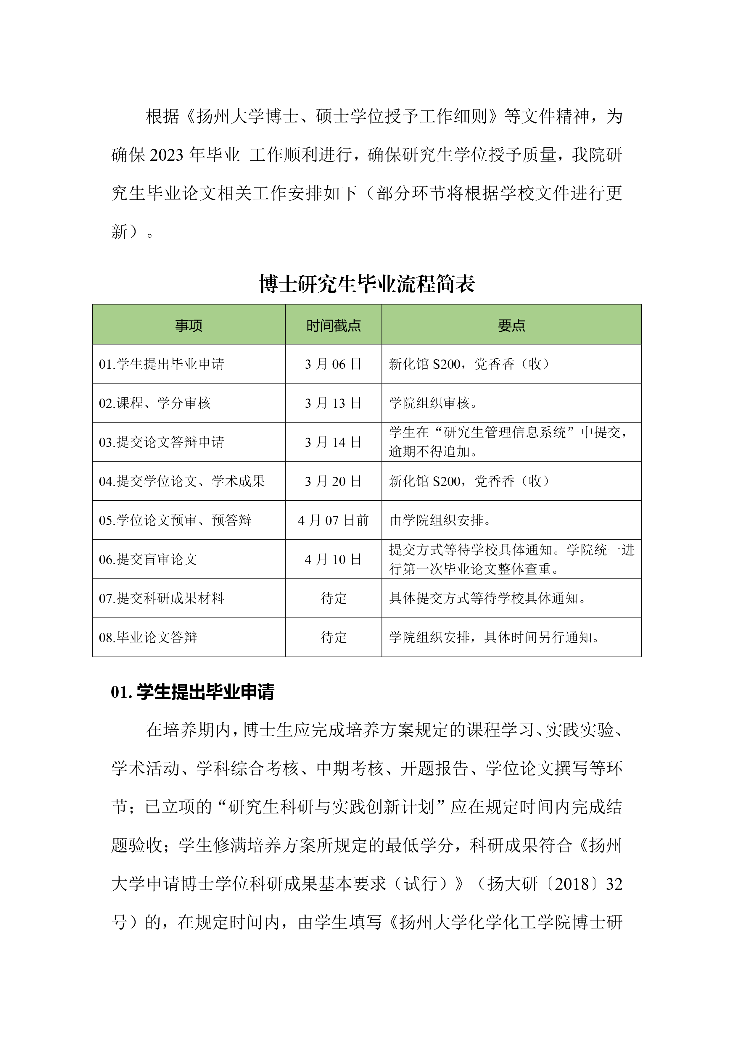 化学化工学院2023年上半年博士研究生毕业工作安排