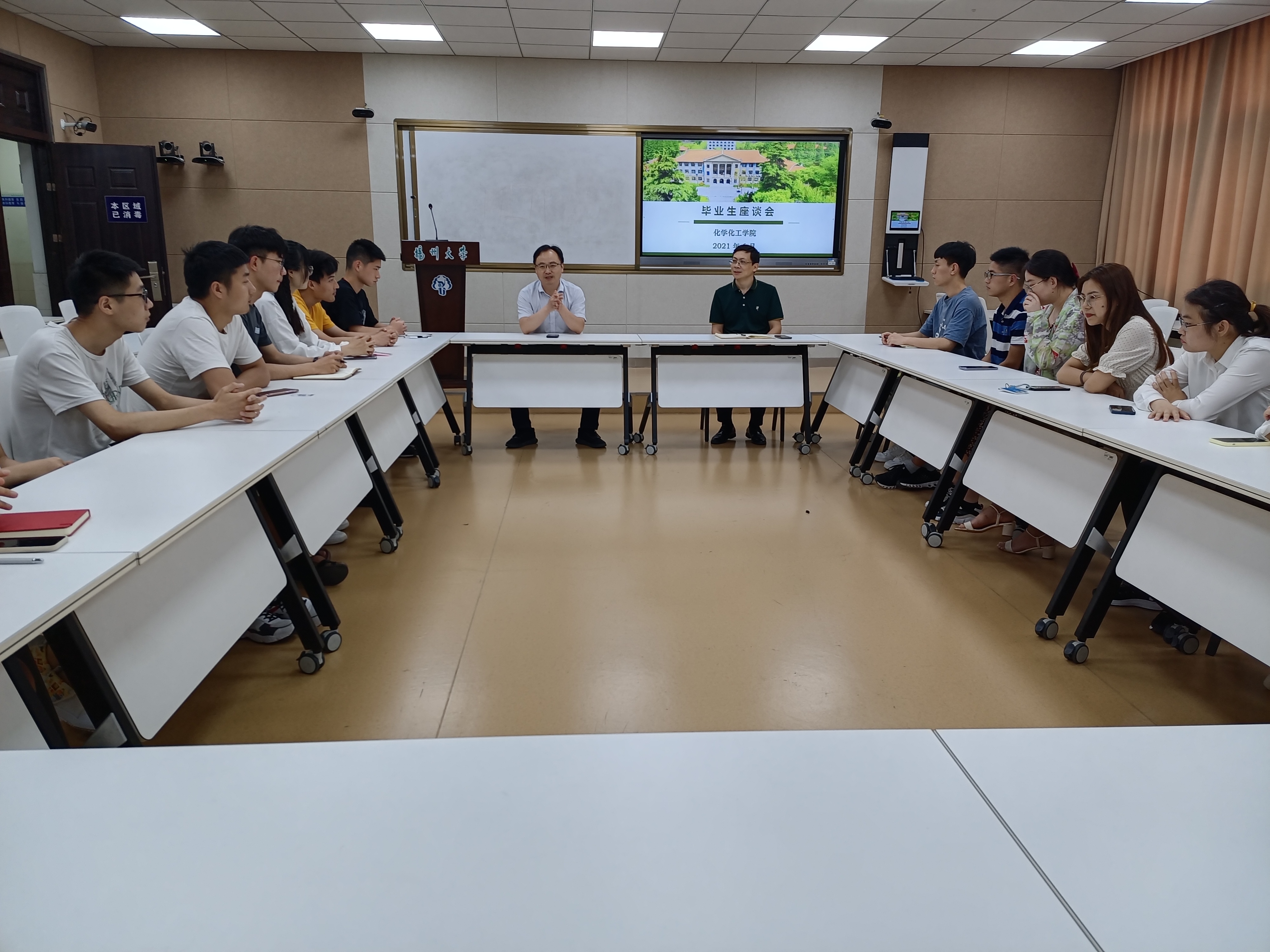 在轻松愉快的氛围中,毕业生代表畅所欲言。他们结合自身实际情况,对学院课程设置、教育管理、实验室安全、后勤服务等方面提出了很多宝贵的意见和建议,同时表达了对学校、学院的不舍与感恩之情。学院领导认真聆听了毕业生代表们的发言,并对同学们提出的问题进行一一解答,对毕业生今后的发展提出了建议。