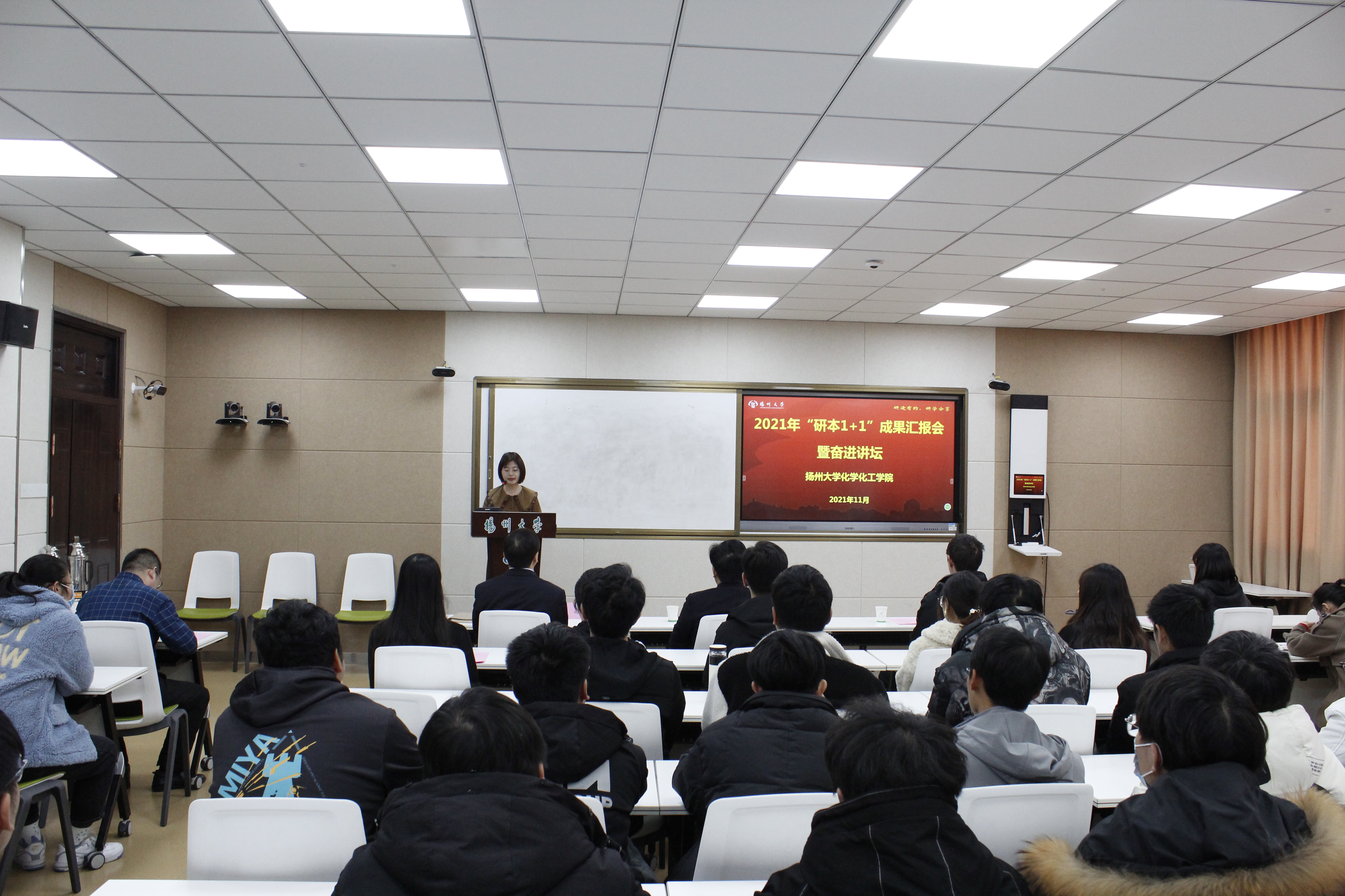 11月25日下午15:00,学院在扬州大学瘦西湖校区新化馆S213举行“研本1+1”成果汇报会暨奋进讲坛。校党委研究生工作部部长吴刚出席会议并发表讲话。院党委副书记高延安主持会议。院团委书记、学工办主任陈松庆,教师代表及部分学生代表参加。