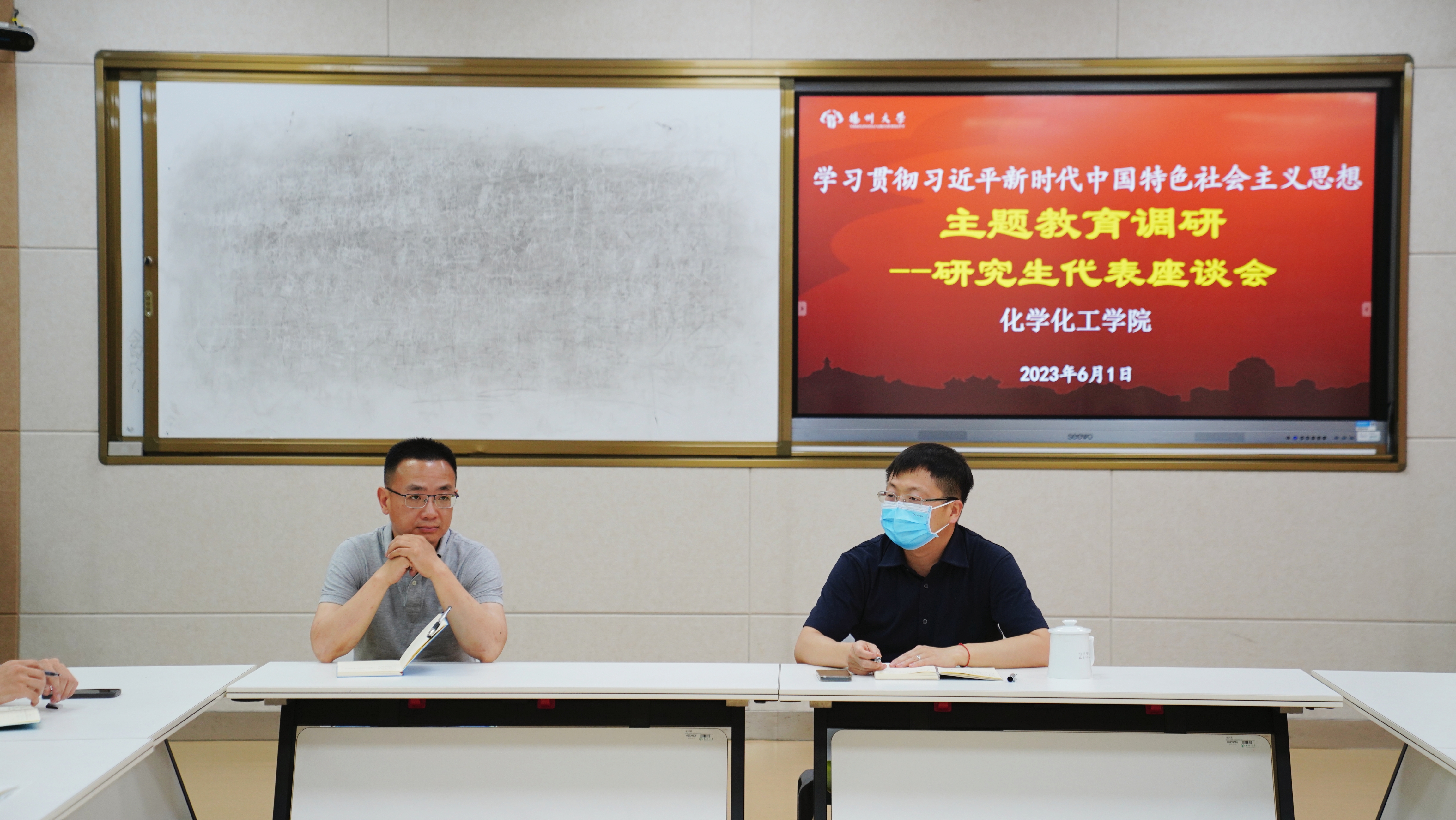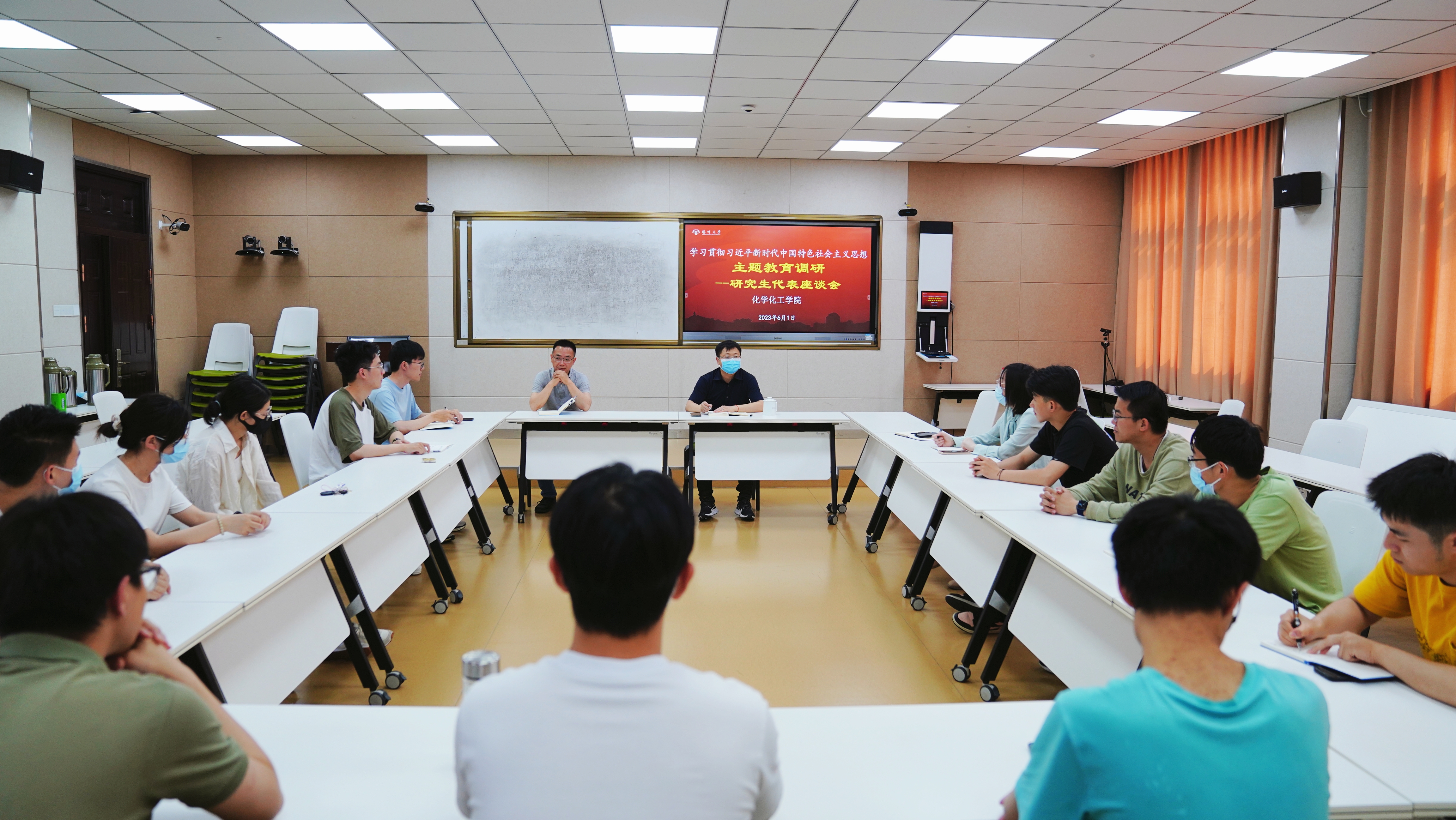 为推动学习贯彻习近平新时代中国特色社会主义思想主题教育走深走实,6月1日下午,学院在新化馆S213召开主题教育调研研究生代表座谈会。院长庞欢、副院长吴德峰出席会议。院研究生教务秘书、研究生辅导员以及15位研究生代表参加座谈。