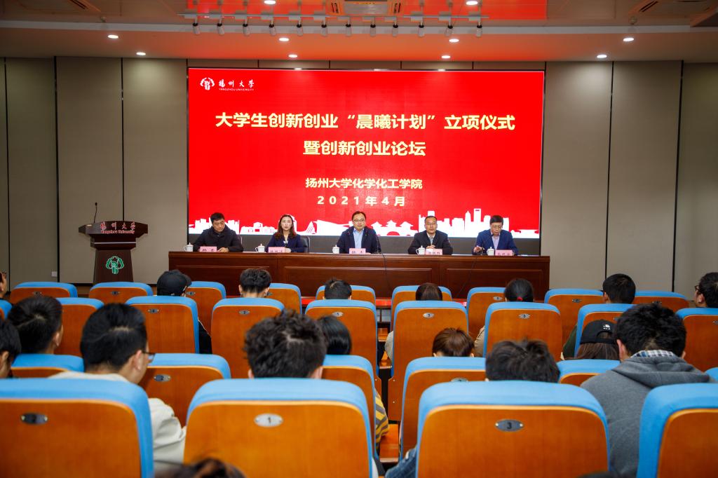 4月17日下午,学院在瘦西湖校区8号楼S405举办扬州大学化学化工学院大学生创新创业“晨曦计划”立项仪式暨创新创业论坛。校毕业生就业指导中心主任、学生处副处长陈轶群,校团委副书记陈佩沛,院长韩杰、副院长韩莹出席会议。院党委副书记高延安主持会议。
