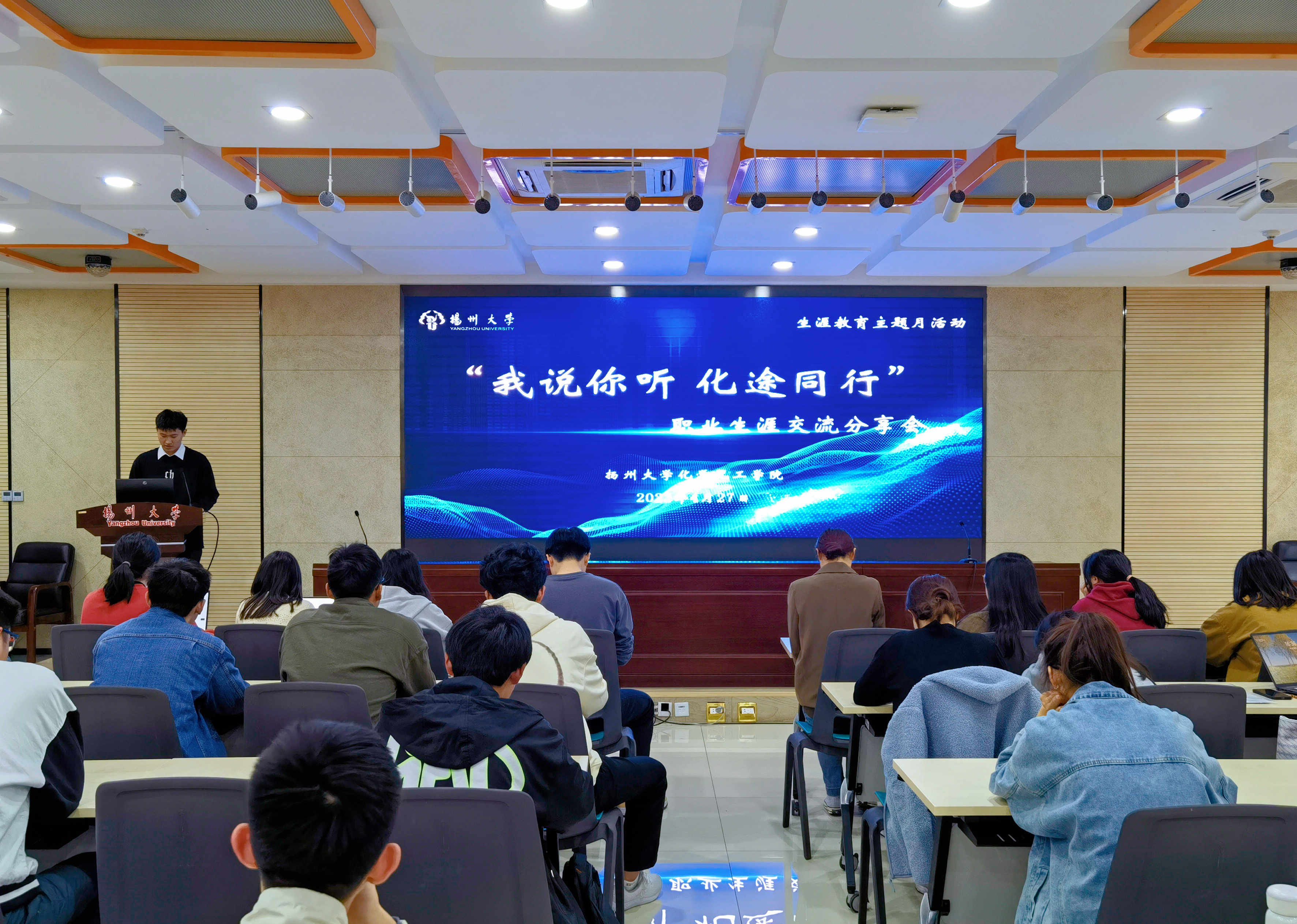 在这个生机勃勃的季节,毕业的脚步不期而至。为培养学生职业规划意识,帮助学生了解当前就业形势,树立正确的就业观,提高求职就业能力,近日,学院在瘦西湖校区8号楼S205举办“我听你说,化途同行”职业生涯交流分享会。本次分享会由院研究生会宣传部副部长王浩博主持。