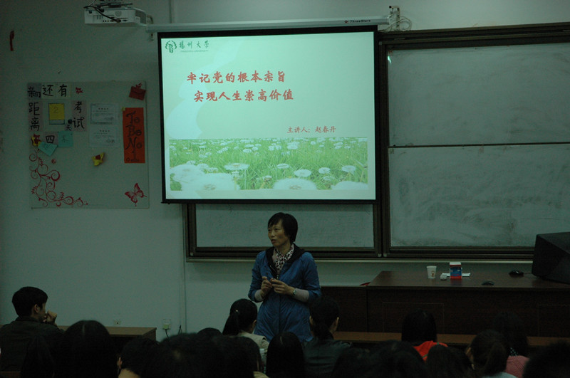 扬州大学党校常务副校长、党委组织部副部长赵春丹老师为我院第51期入党积极分子培训班作《牢记党的根本宗旨 实现人生崇高价值》的主题党课。