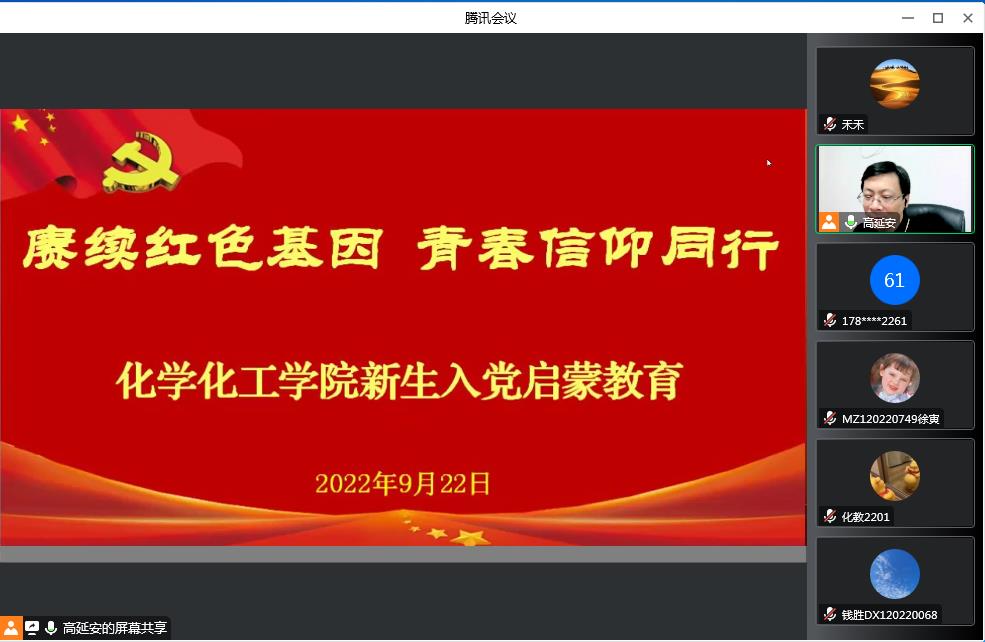 为加强大一新生对中国共产党的认识,提高思想觉悟,端正入党动机,激发入党积极性,2022年9月22日,我院举行2022级新生入党启蒙教育,我院党委副书记高延安同志主讲,2022级全体本科生、研究生新生参加。