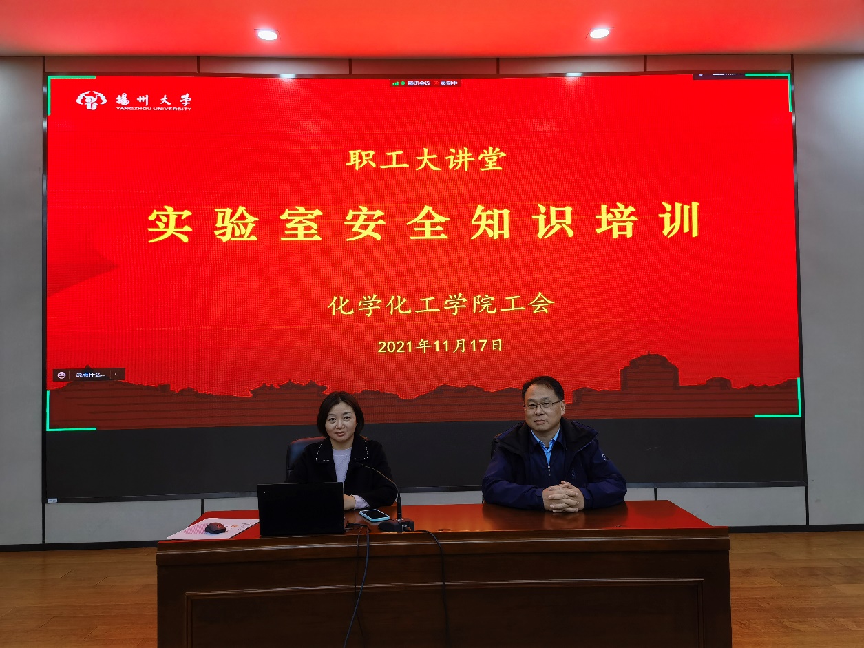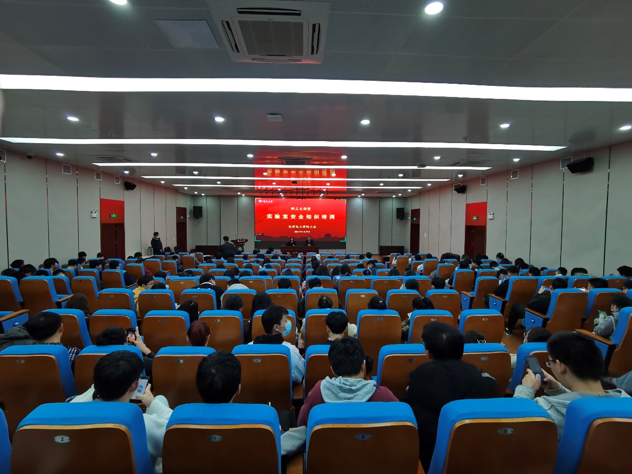 为进一步加强学院安全教育和管理工作,牢固树立“安全第一”的意识,切实将安全教育和管理融入到学院师生日常工作学习的各个环节,确保广大师生安全,确保校园和谐稳定,11月17日晚,化学化工学院工会在瘦西湖校区8号楼四楼报告厅,通过现场参会和线上会议的方式,对我院350多名新进老师和硕博新生进行了安全知识培训。