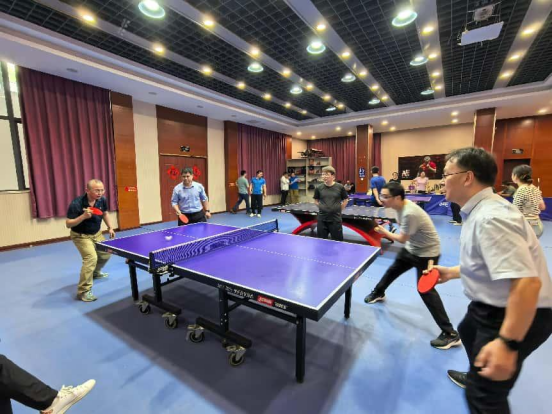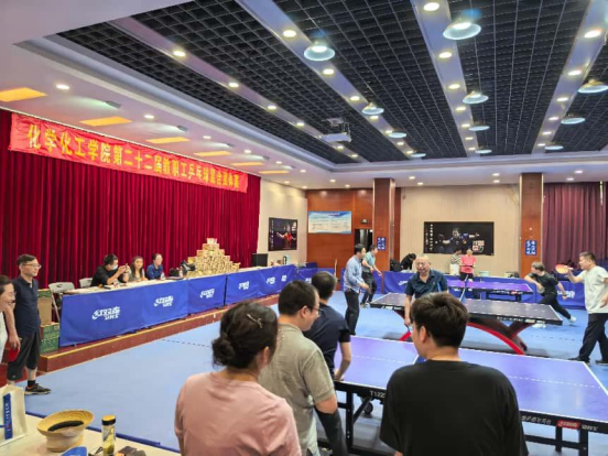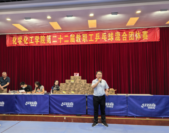 为丰富教职工的业余生活,增强团队凝聚力,展现教职工积极向上的精神风貌,2025 年 5 月 14 日,化学化工学院在瘦西湖校区教工活动中心隆重举行第二十二届教职工乒乓球混合团体赛。院党委书记娄金海参加活动,并宣布比赛正式开始。