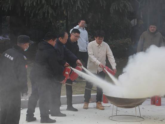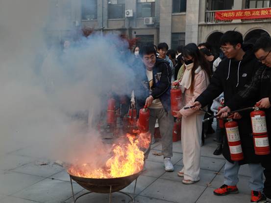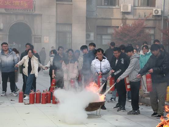 6、 疏散演练结束后,由保卫处讲解如何选择正确灭火器种类并示范使用灭火器灭火。之后,全院师生进行灭火演练,娄金海书记、庞欢院长也都使用灭火器进行了灭火演练。