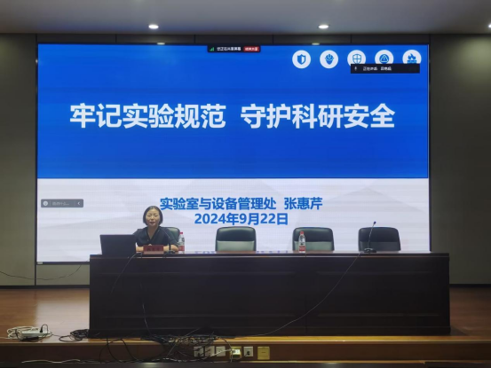随后,校实验室与设备管理处副处长张惠芹为新生们带来“牢记实验规范,守护科研安全”实验室安全主题讲座。