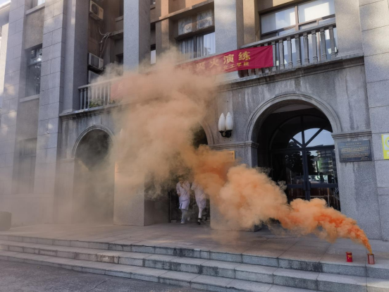 随着创新材料与能源研究院院长徐琴“演练开始”的一声令下,模拟烟雾在老化馆门前弥漫,消防警报声骤然响起,演练正式开始。现场人员迅速反应,疏散引导组立刻奔赴各自岗位,有条不紊地组织师生用湿毛巾捂住口鼻,弯腰低姿沿着疏散通道撤离。整个疏散过程紧张有序,师生们都能按照预定路线快速疏散。在疏散通道的关键位置,疏散指示标志清晰可见,应急照明设备正常工作,为师生疏散提供了有力保障。