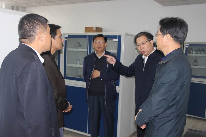 10月17日下午,校党委姚冠新书记在叶柏森副书记和洪涛副校长的陪同下,察看我院科研室、化学药品库房和大型仪器设备中心,检查指导我院实验室安全工作。