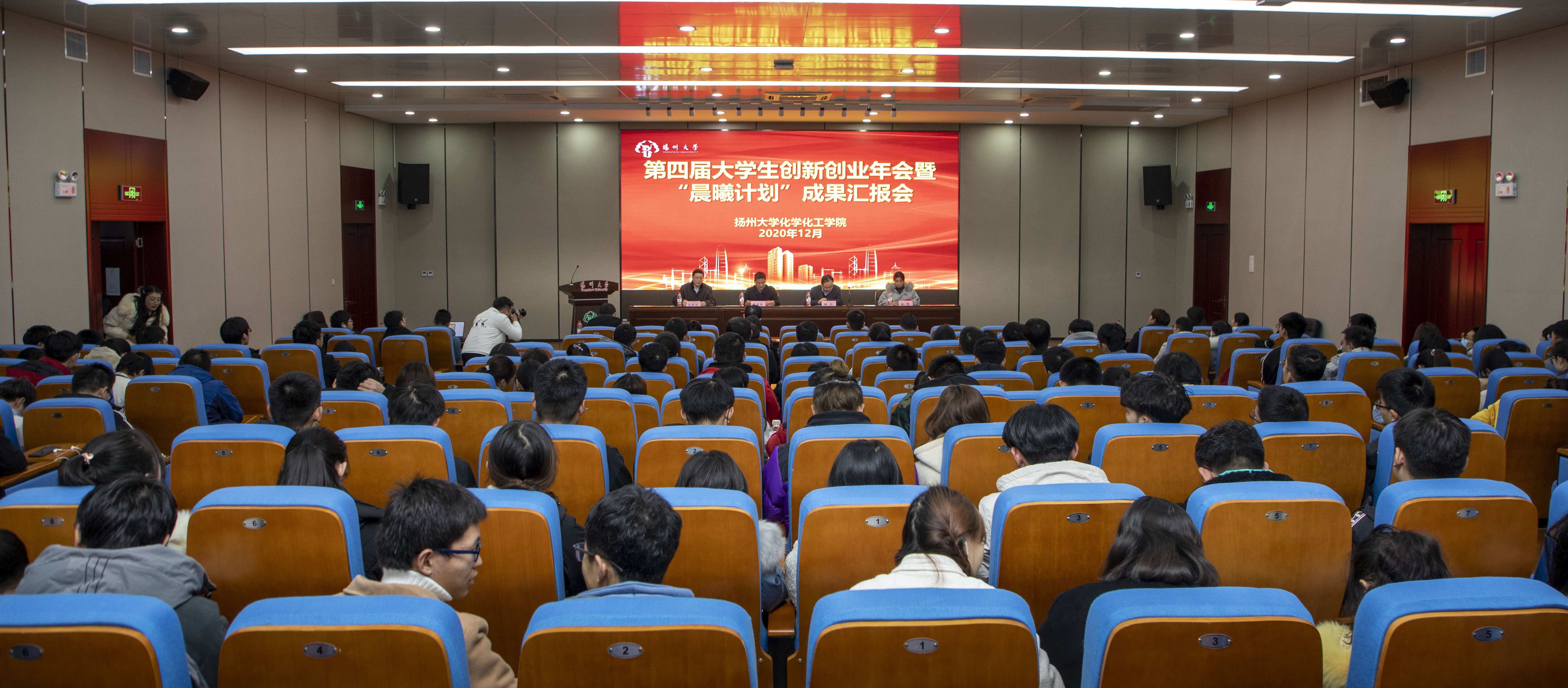 12月10日,我院第四届大学生创新创业年会暨“晨曦计划”成果汇报会在瘦西湖校区教学楼四楼报告厅举行。院党委书记周建兵、院长韩杰、副院长徐琴出席会议,会议由院党委副书记高延安主持。