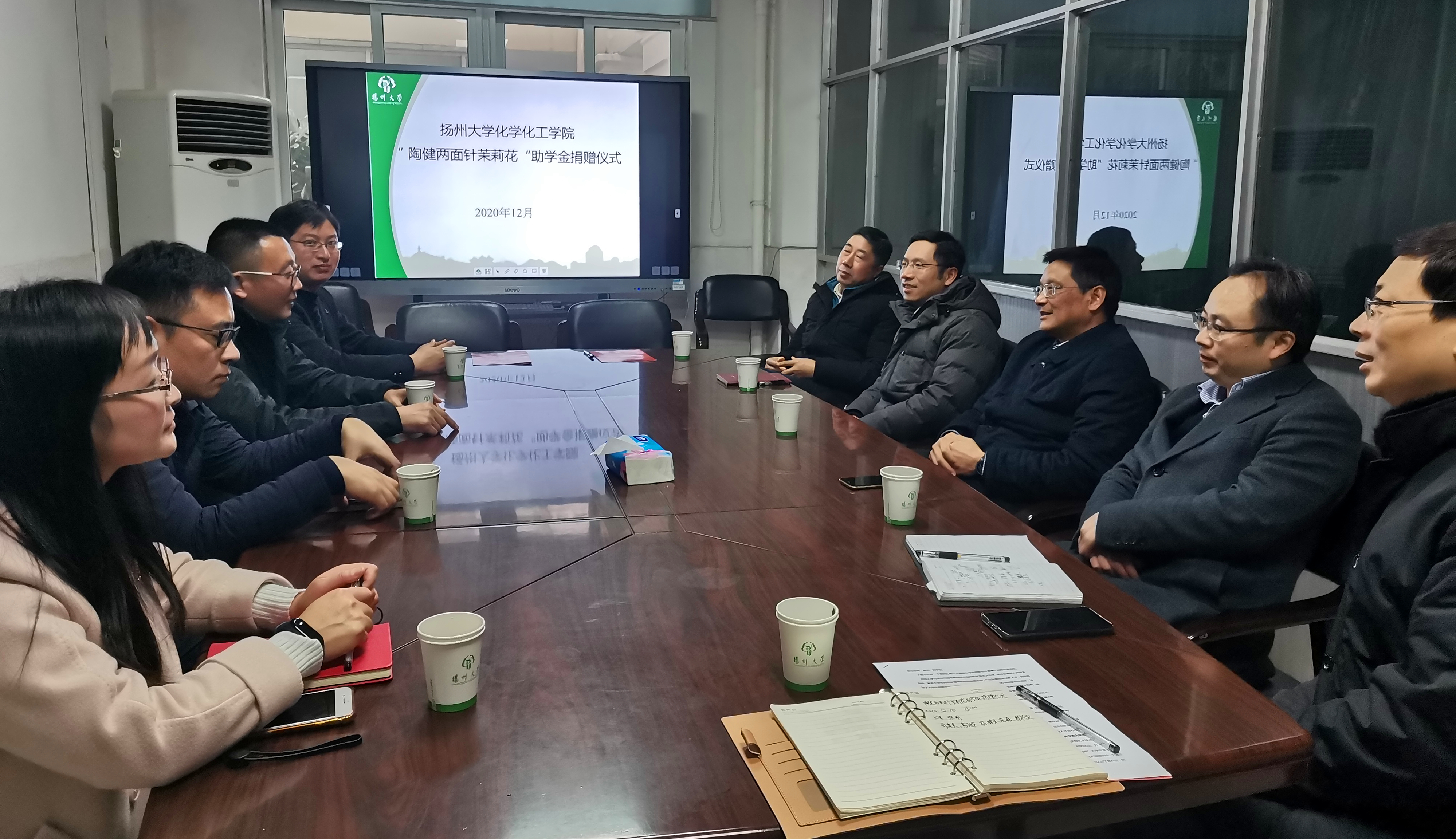 12月10日下午,扬州大学化学化工学院“陶健两面针茉莉花”助学金捐赠仪式在新化馆S202会议室举行。江苏省酒店日用品协会会长、两面针(江苏)实业有限公司总经理兰进,院党委书记周建兵,院长韩杰,院党委副书记高延安及教师代表参加了本次捐赠仪式。