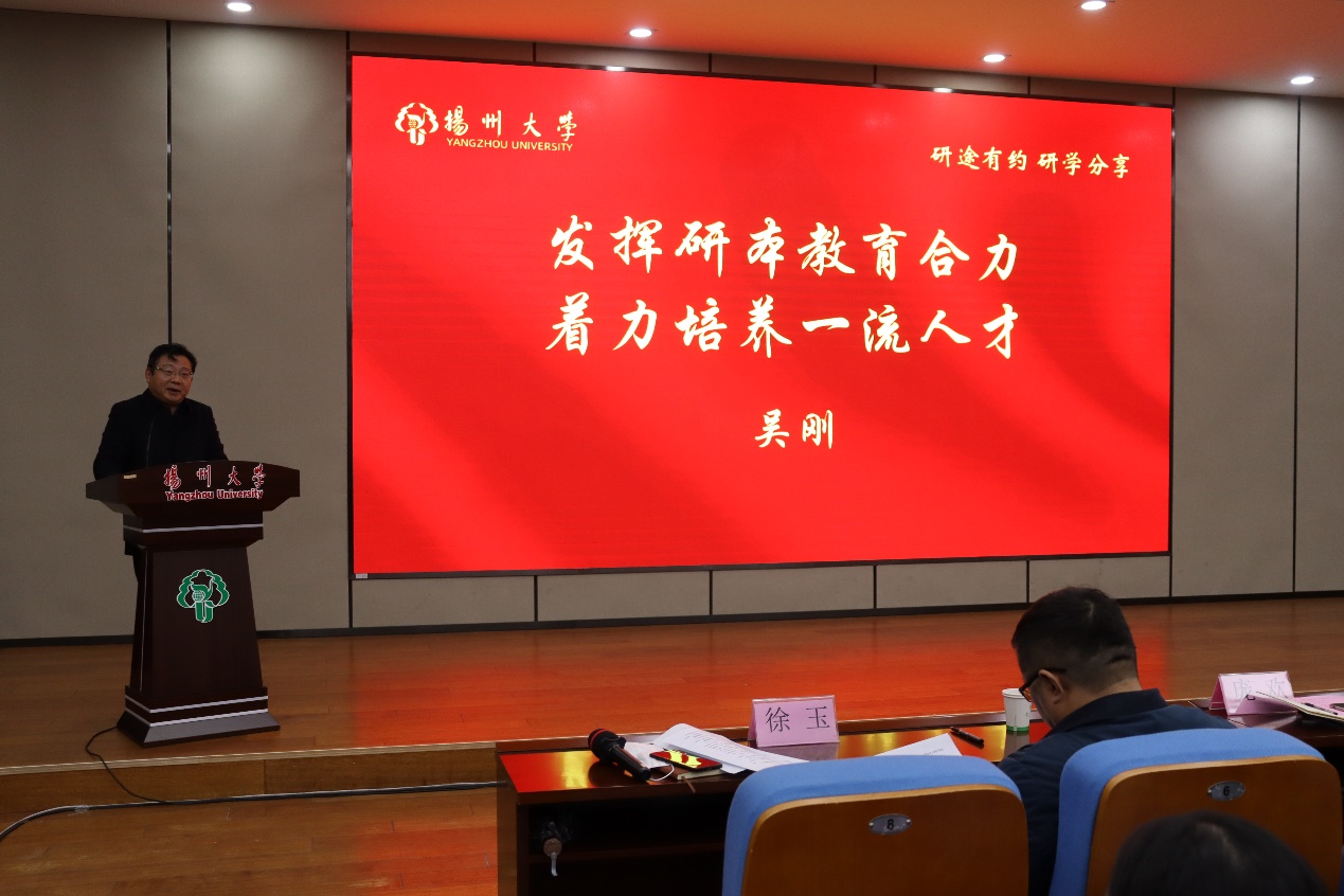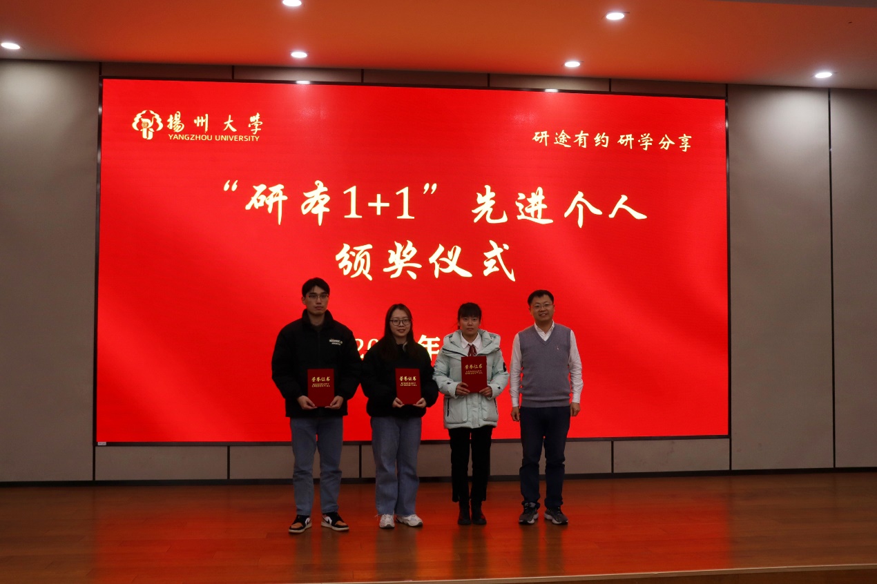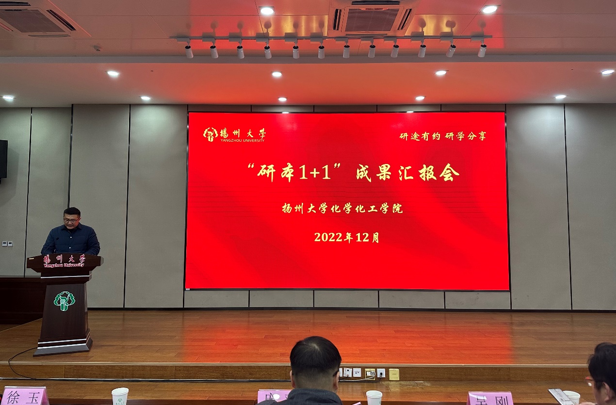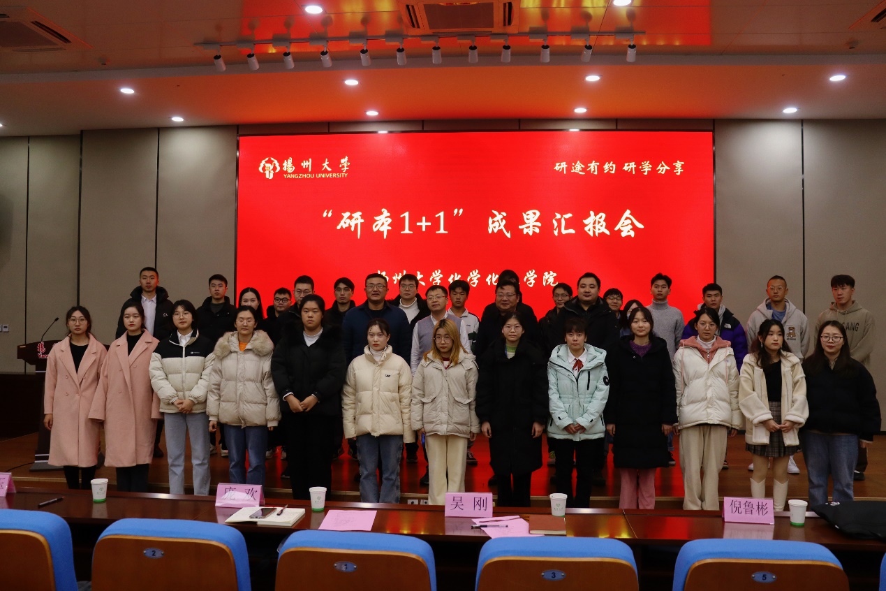 12月3日下午,我院在瘦西湖校区8号楼4楼S405报告厅举行“研本1+1”成果汇报会,党委研工部部长吴刚、院长庞欢、院党委副书记徐玉出席汇报会。