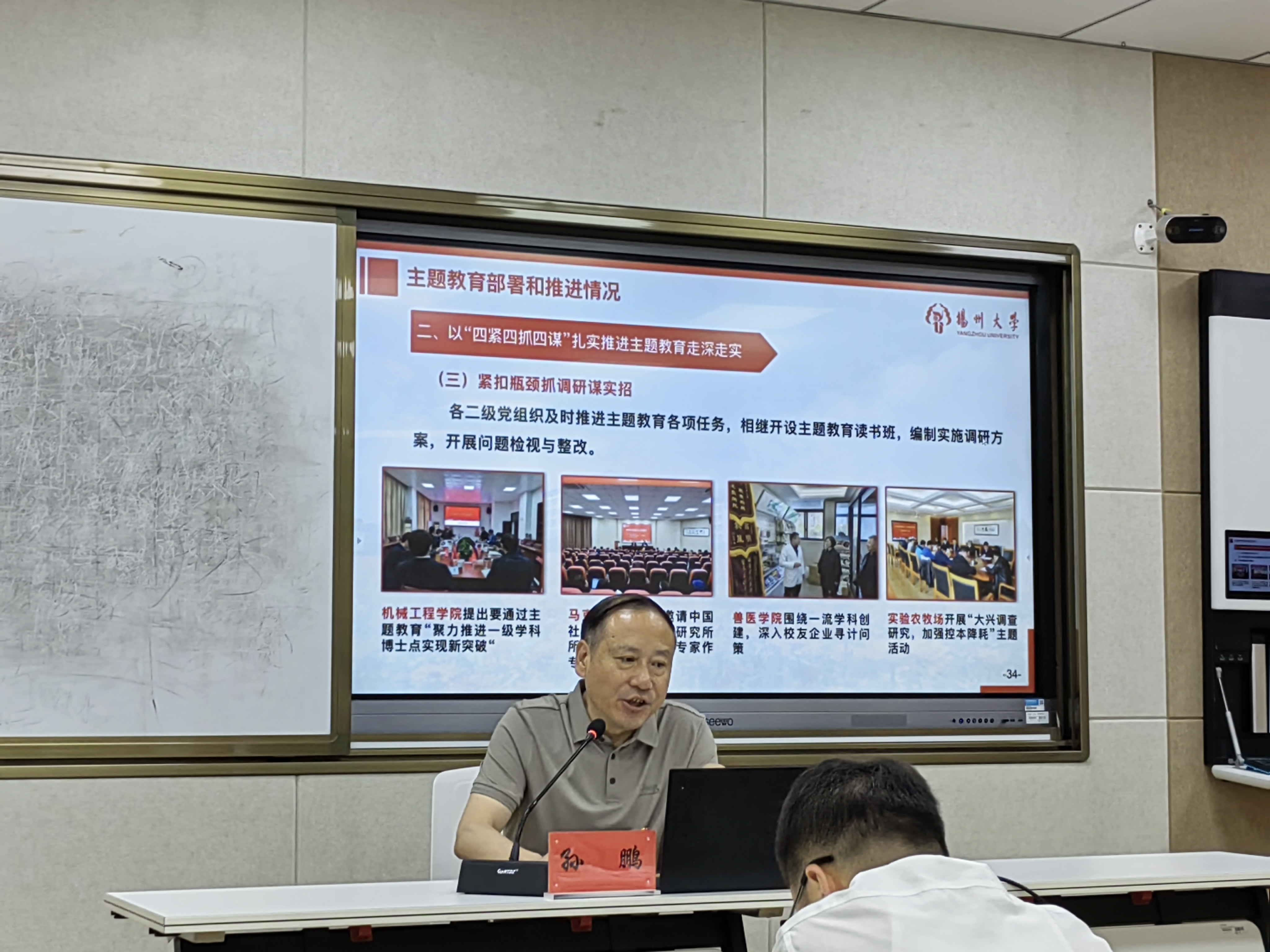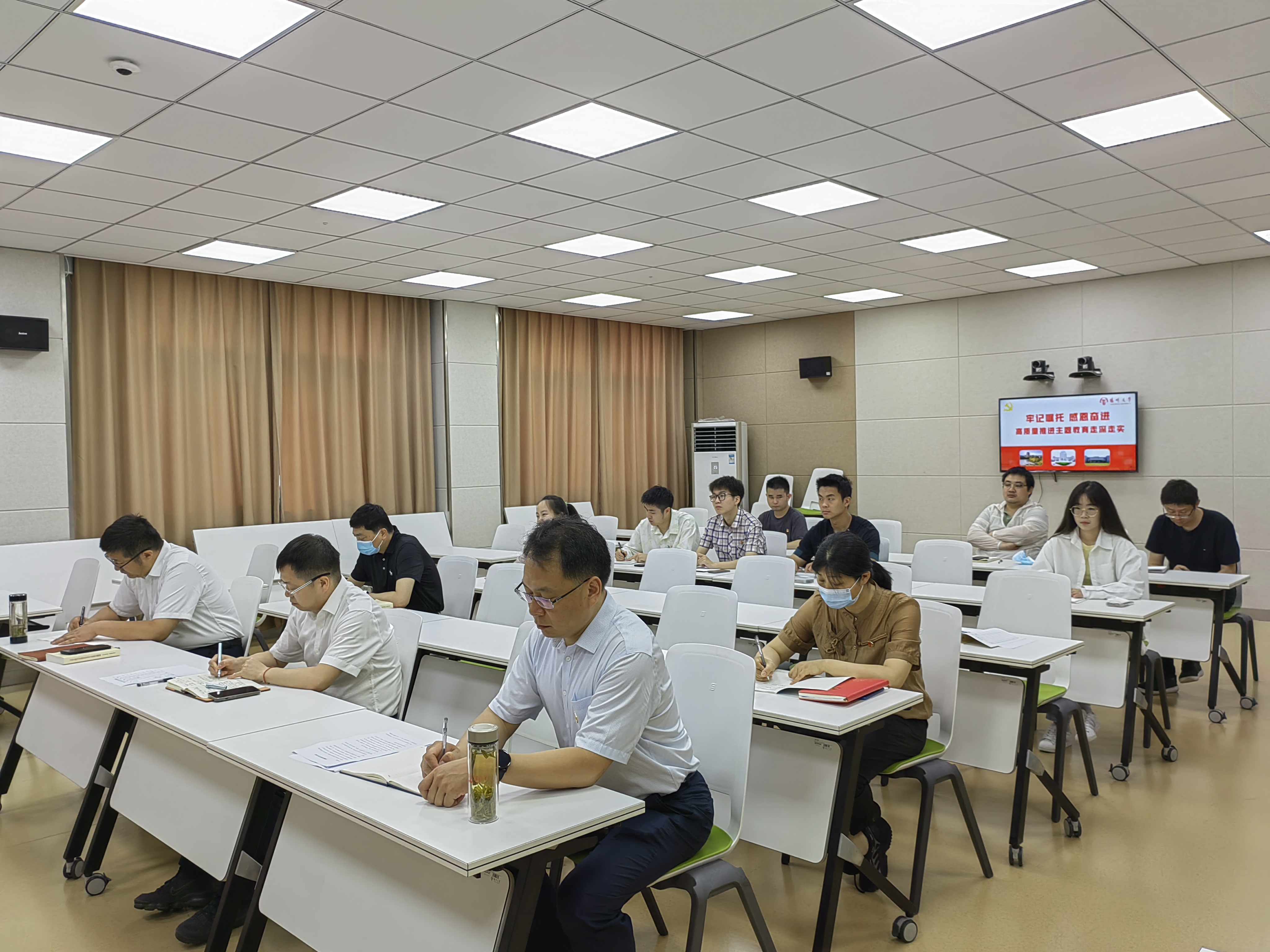 孙部长的专题辅导报告围绕“中央、省、学校主题教育方案精神”“学校学习、调研和整改方案”和“学校主题教育部署和推进情况”等三个方面逐一展开,结合具体事例,通过详细介绍国家、省和学校主题教育相关要求,深度解读学校有关主题教育的实施方案和学校近期主题教育的要求,帮助学院党委领导班子成员和党务干部更加深刻地认识到主题教育的重大意义,对于把握主题教育“学思想、强党性、重实践、建新功”的总要求,做好主题教育后半篇文章有了清晰的认识。学院党委娄金海书记在总结时表示,全院党员特别是主题教育读书班全体成员,要坚持学思用贯通、知信行统一,进一步加强主题教育与业务工作的融合,在全面系统读原著、学原文、悟原理中汲取奋进力量,带动更多党员教师学以致用,切实做到“以学铸魂、以学增智、以学正风、以学促干”。