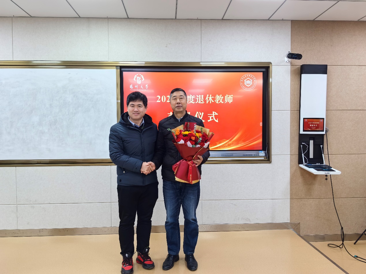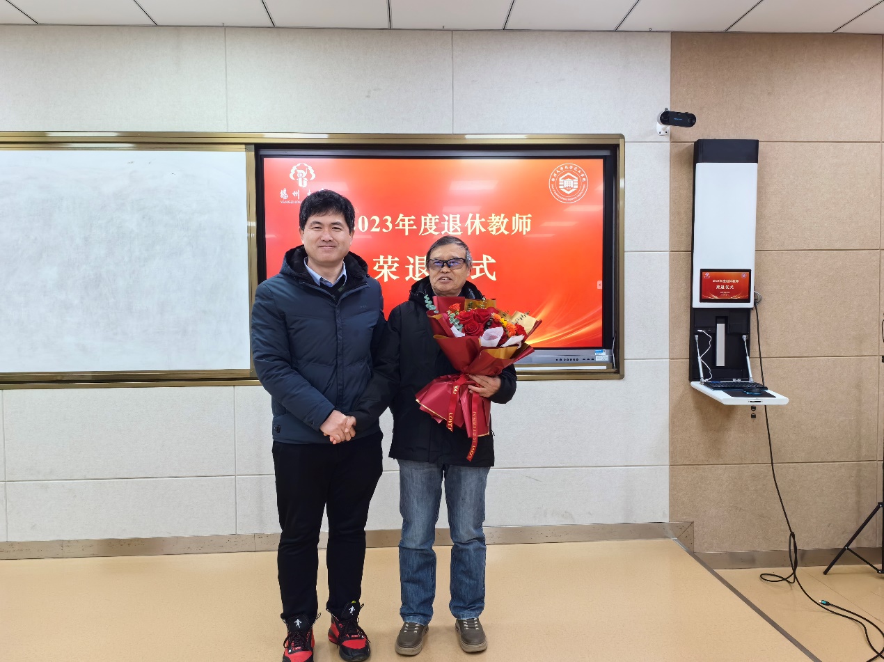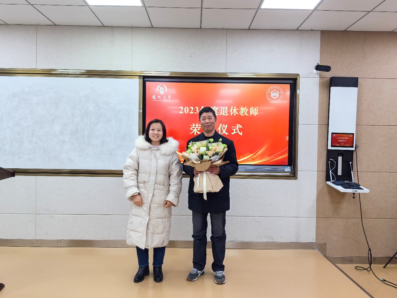 元月3日,我院在新化馆S213为学院2023年光荣退休的5位老师:张明老师、菅盘铭老师、杨继生老师、杨成根老师和刘印林老师举行荣退仪式。全体院领导、相关教研室负责人和青年教师代表参加活动。仪式由庞欢院长主持。