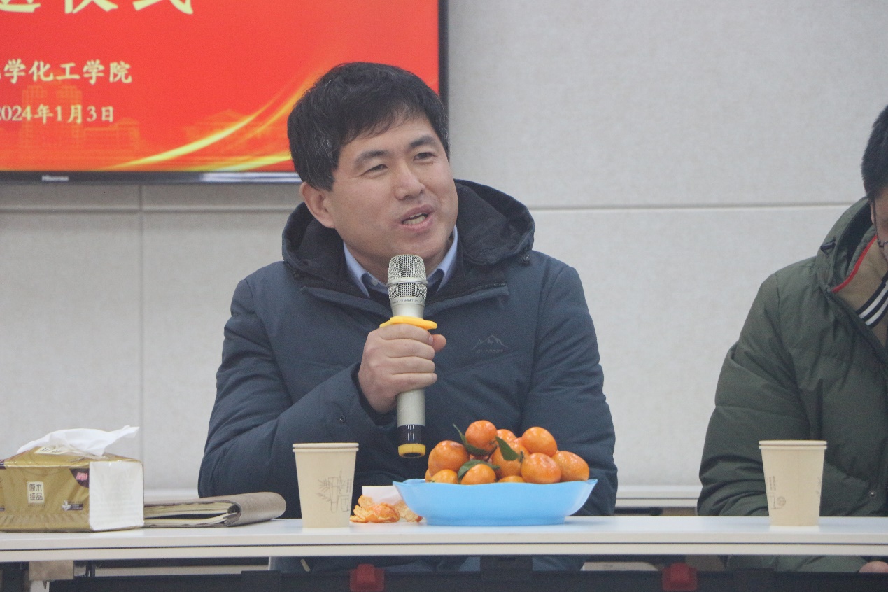 院党委书记娄金海总结讲话。他指出,学院为2023年退休教职工举行荣退仪式,目的是为了彰显尊师重道,薪火相传。每一位荣退教师都爱院如家,秉承坚苦自立的校训精神,奋斗在教学、科研、管理、服务的岗位上,是学院事业发展的见证者、实践者、推动者。他们身上,体现了扬大化学人严谨务实、求是创新、团结奋进的精神,学院衷心感谢各位荣退教师多年以来的辛勤付出。希望五位老师能够继续关心学院的发展和青年教师的成长,经常回学院看看,发挥余热;希望青年教师们能传承荣退老师们的精神,积极投身学院教学、科研、社会服务工作,将学院事业建设得更好;祝愿各位荣退老师退休后身体健康、家庭幸福,生活更加丰富多彩。
