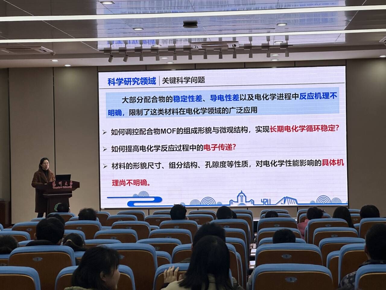 会上,围绕科学/技术研究领域、研究和解决的科学/工程问题、近三年已取得的标志性成果、未来两年团队的发展规划和预期标志性成果以及对学院工作的建议等方面,19位老师先后做了专题学术报告,报告涉及了手性催化与生物应用、生物分子检测与纳米能源、运动医学功能材料、功能有机分子合成、辐射防护材料、硒科学、生物质及可降解高分子等研究领域。每一场报告,都体现了学术团队丰富的科学内涵和扎实的研究工作,也让不同研究方向的老师和同学进一步加深了相互了解,为今后更好协同合作、共同进步创造了良好契机。