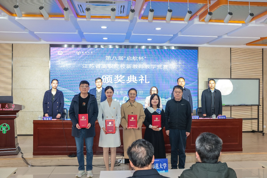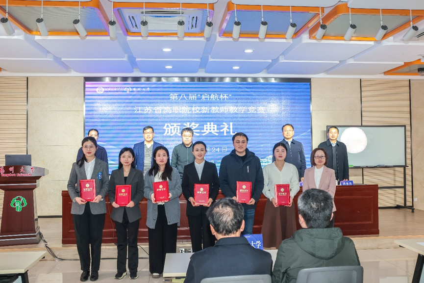 3月22至24日,第八届“启航杯”江苏省高职院校新教师教学竞赛在扬州大学举行。本次比赛由江苏省教育厅教师工作处、江苏省高等职业教育教师培训中心主办,扬州大学化学化工学院承办。来自南京师范大学、南通大学、扬州大学、江苏理工学院、淮阴师范学院5个培训基地选派的20个团队60名选手参加比赛,全省各高职院校的80余名专家学者、学员等现场观摩比赛。江苏省教育厅教师工作处张卫星处长,扬州大学副校长龚卫娟,江苏省高职教师培训中心主任郭耿玉、副主任顾添笑,扬州大学继续教育处副处长洪秀兵等出席颁奖典礼,扬州大学化学化工学院党委书记娄金海主持颁奖典礼。