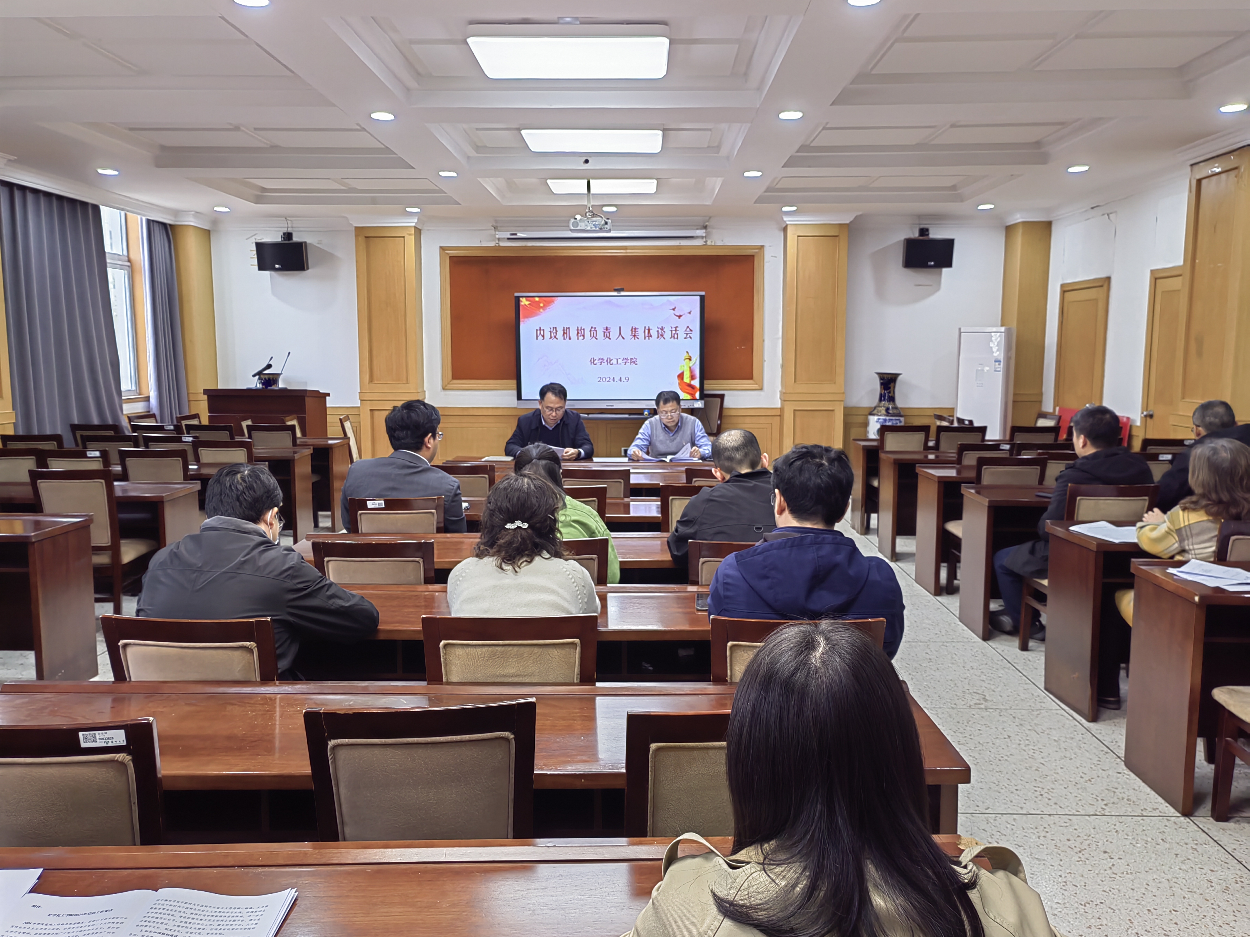 2024年4月9日下午,学院举行内设机构负责人集体谈话会。会上,院党委书记娄金海宣读了院党委关于21位新聘任内设机构负责人的通知,并对新聘任同志提出工作要求。会议由院长庞欢主持。