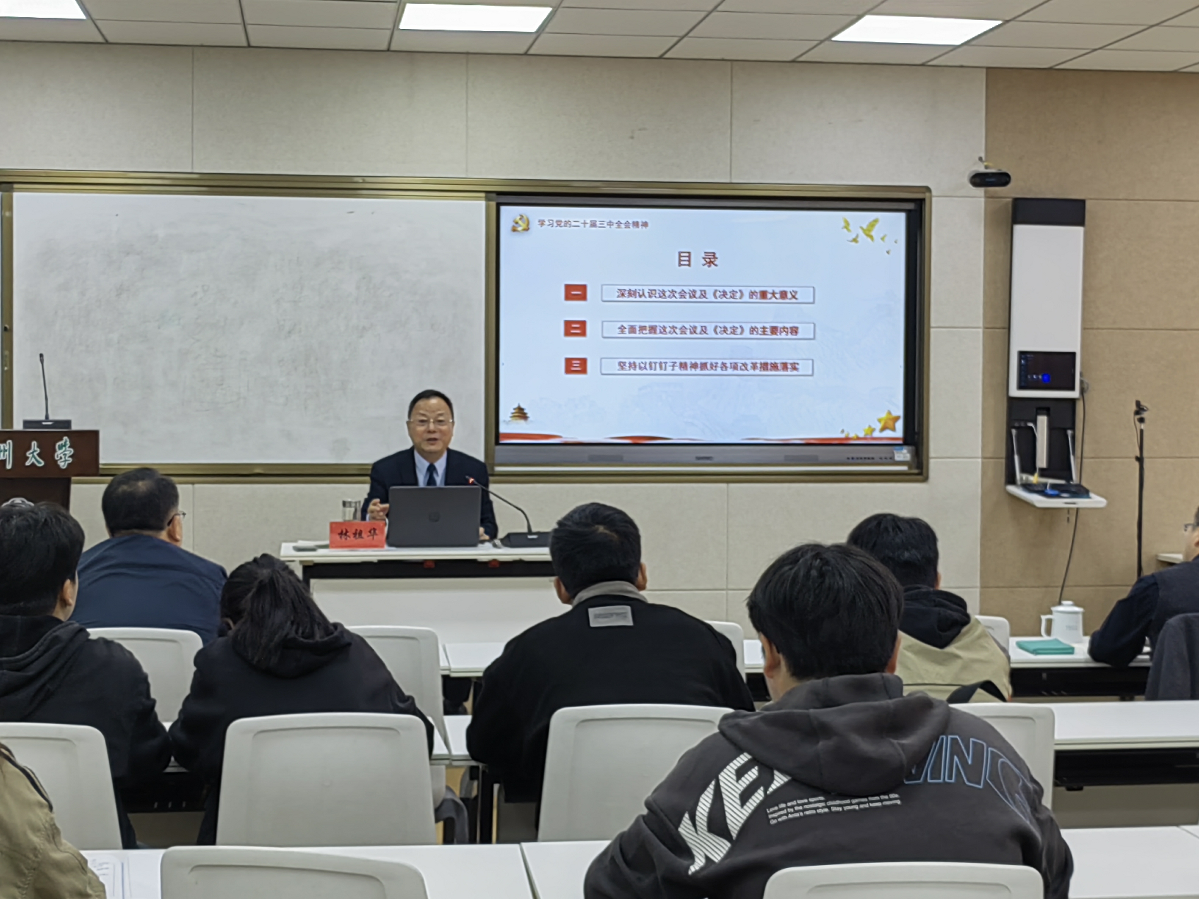 10月23日下午,扬州大学马克思主义学院博士生导师、林祖华教授应邀来化学化工学院作题为“深入学习党的二十届三中全会精神与教育高质量发展”专题辅导报告。学院党委书记娄金海同志主持报告会。