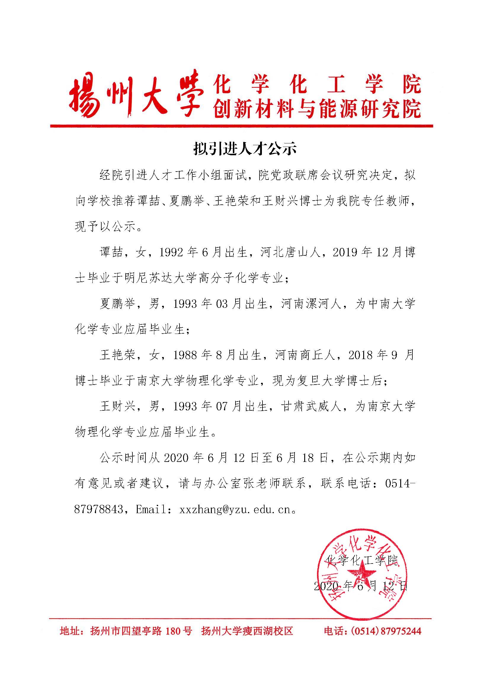 地址:扬州大学瘦西湖校区化学与材料学院 邮编:225002
