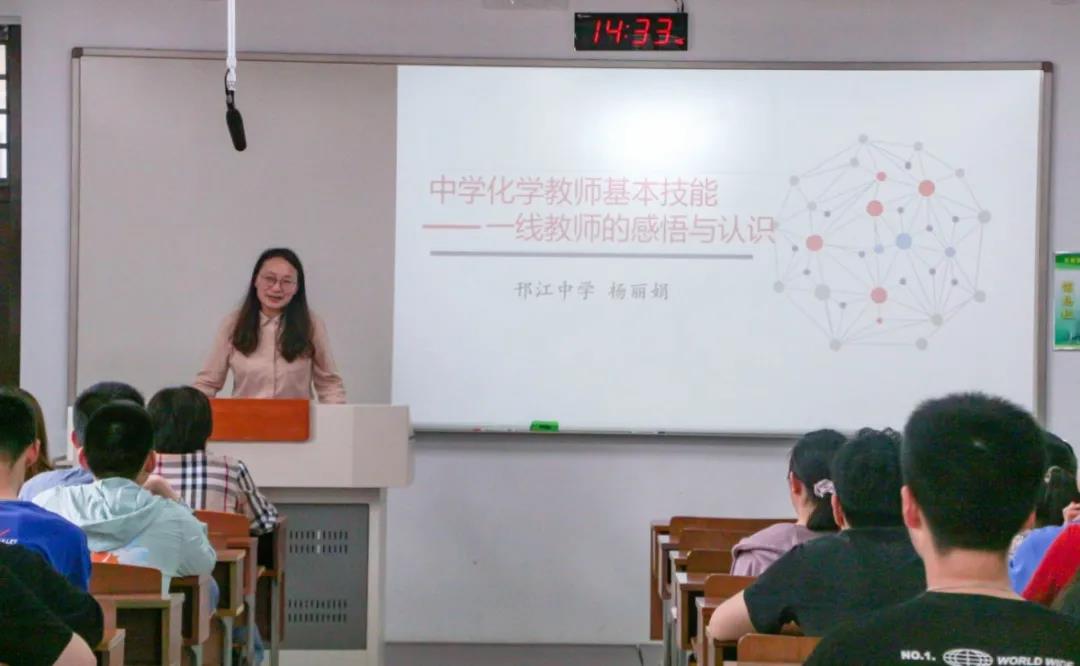 分享会上,来自邗江中学的高级教师杨丽娟老师为同学们分享了自己的教学体会,并向同学们传授如何设计一堂生动的教学内容。吕琳老师、景崤壁老师、吴晓霞老师分别对师范生教学基本功的训练提出指导意见。