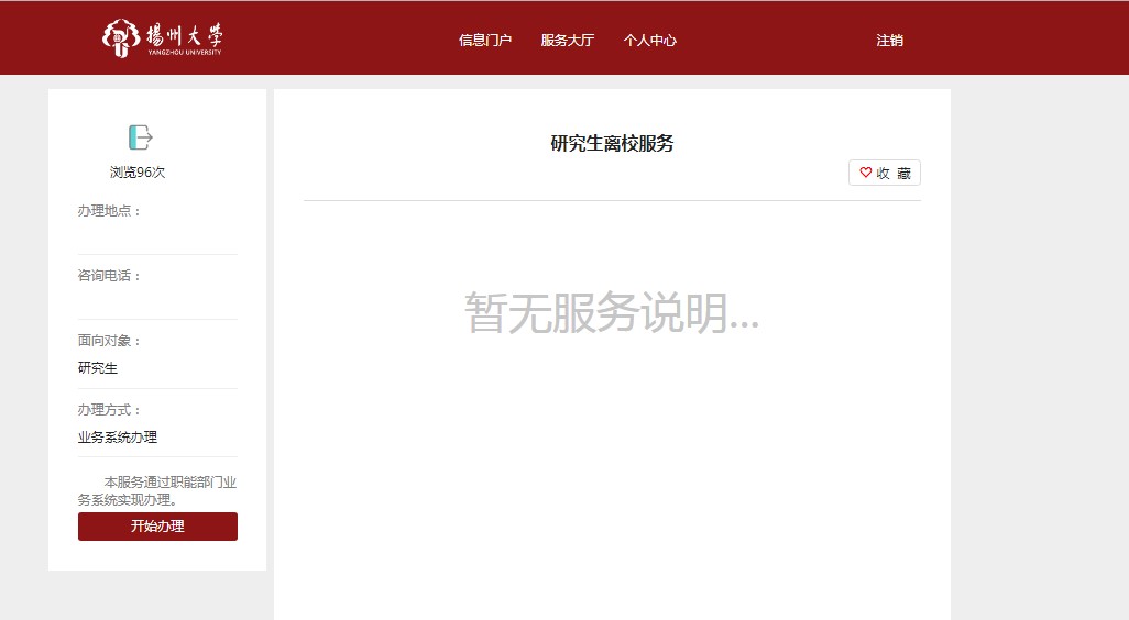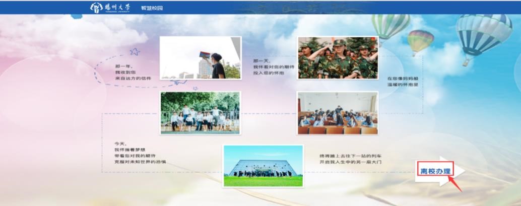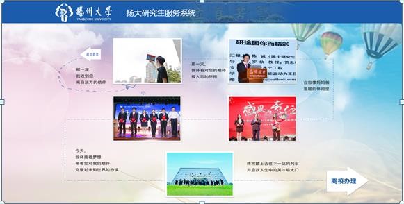 5.进入扬大研究生服务系统界面,点击【离校办理】;