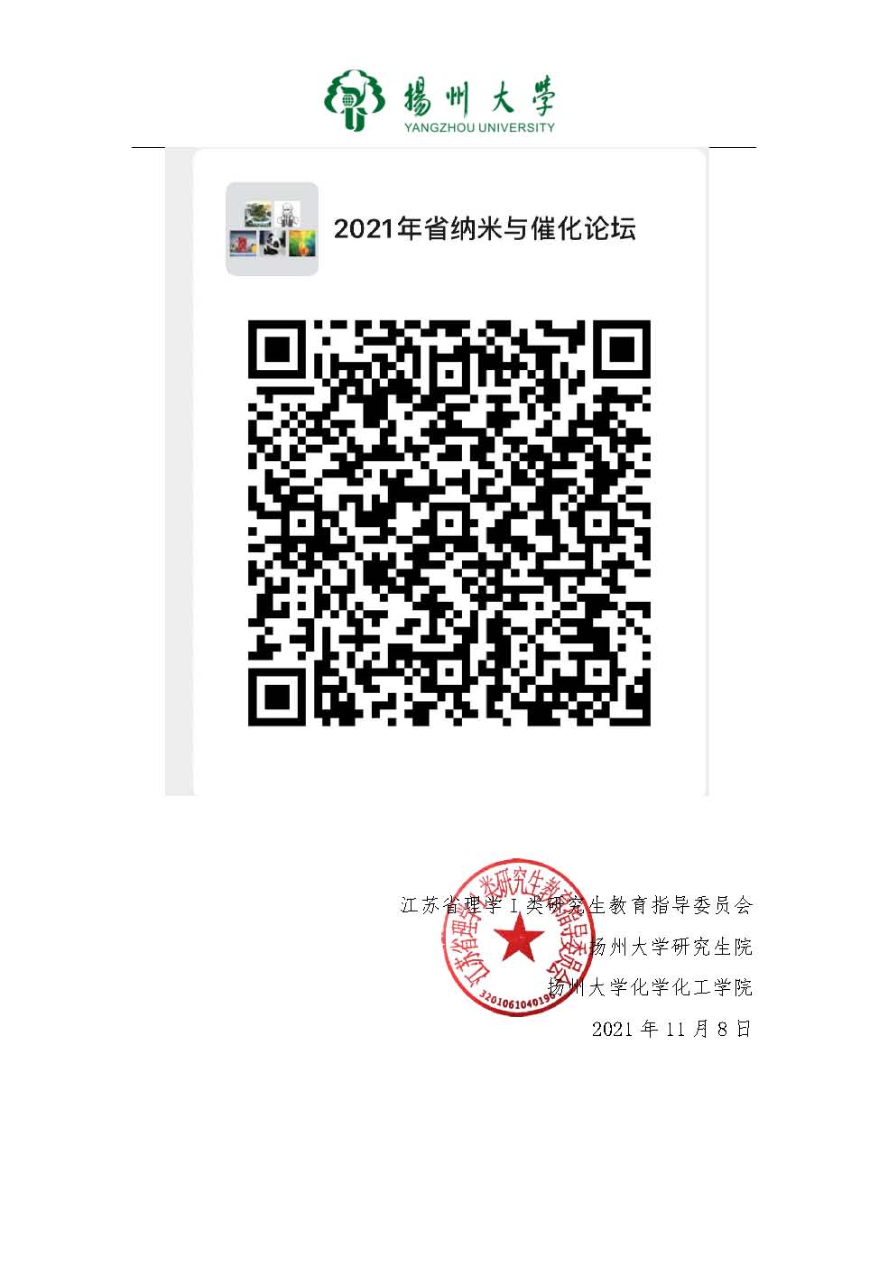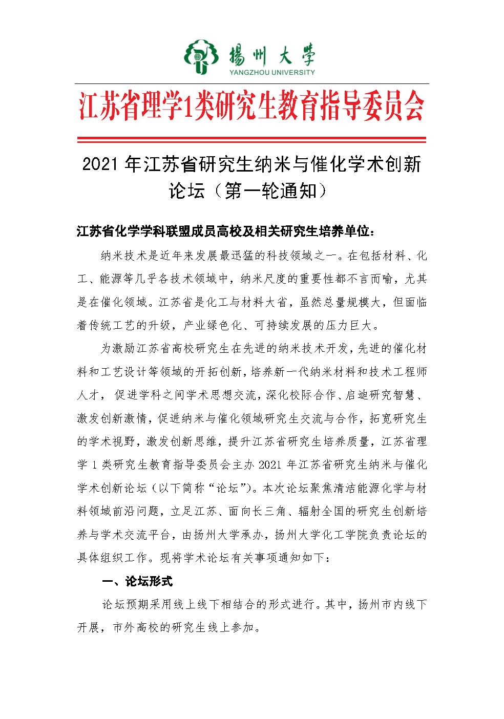 2021年江苏省研究生纳米与催化学术创新论坛(第一轮通知)