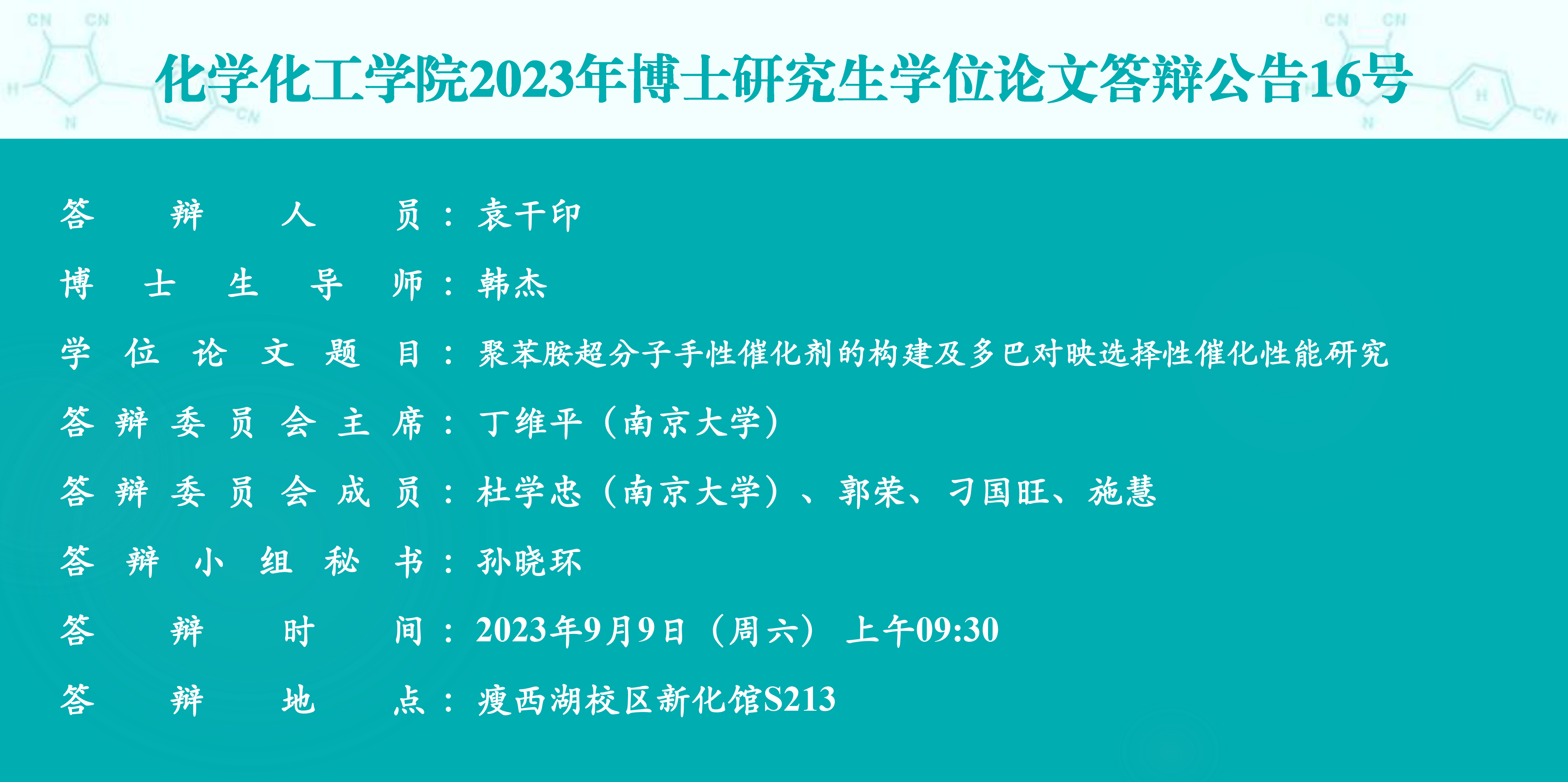 博士研究生学位论文答辩公告16号