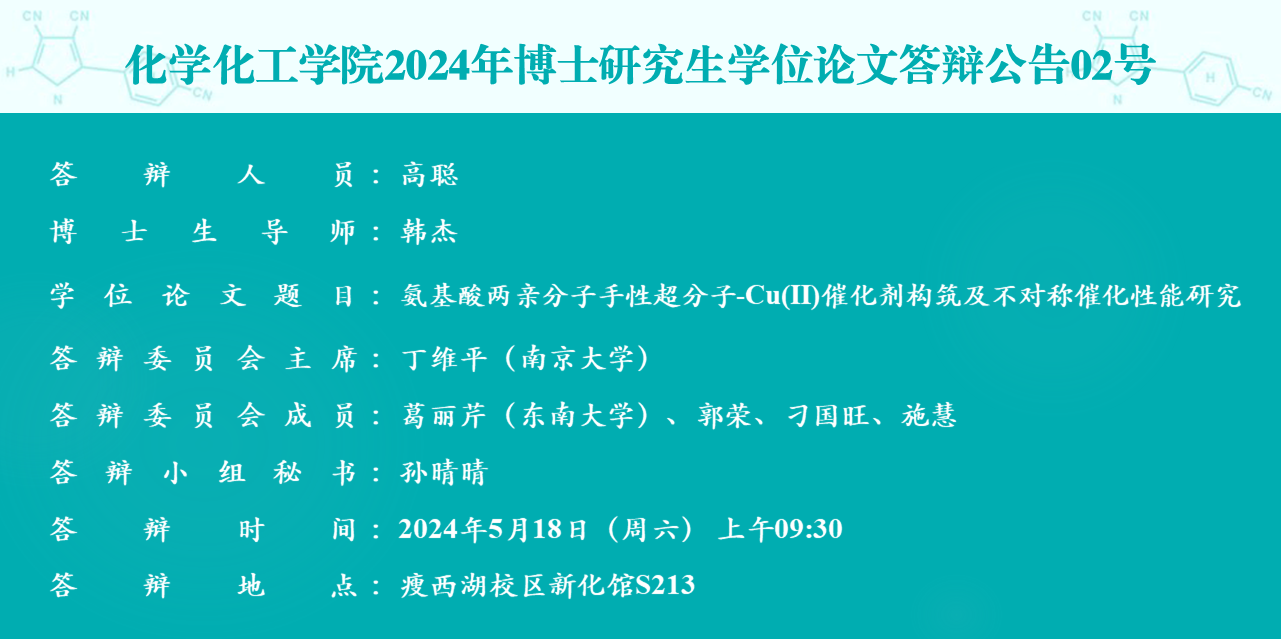 化学化工学院2024年博士研究生学位论文答辩公告02号