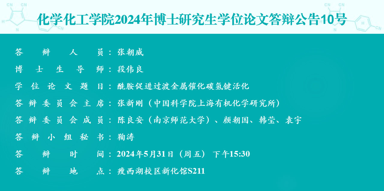 化学化工学院2024年博士研究生学位论文答辩公告10号