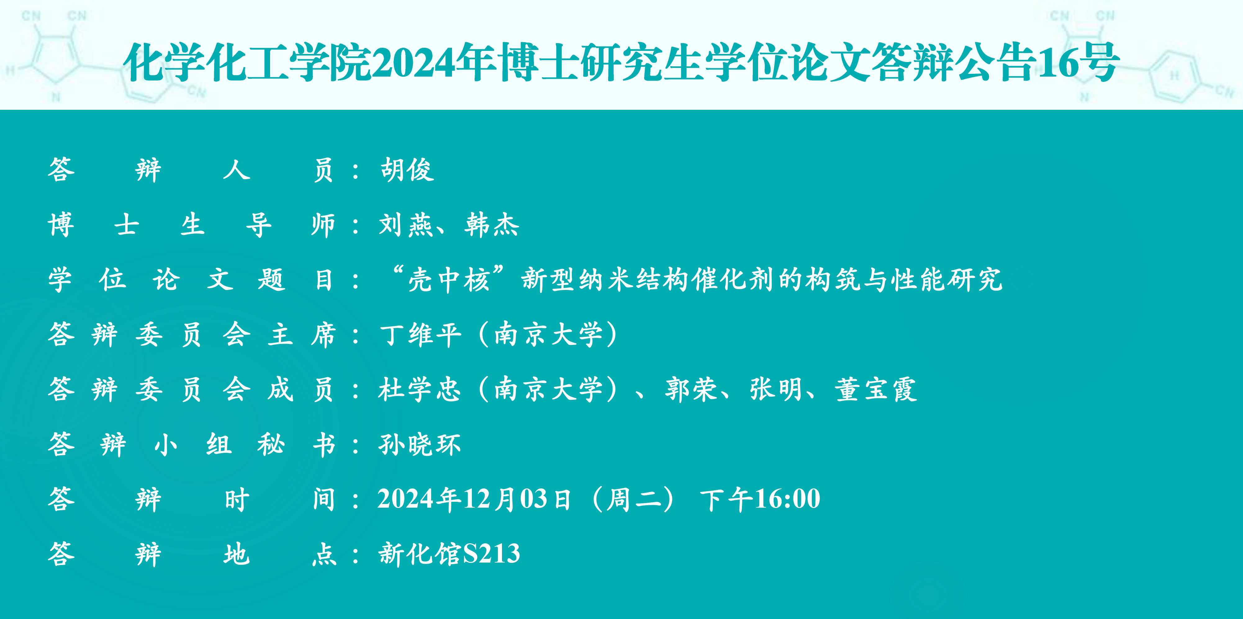化学化工学院2024年博士研究生学位论文答辩公告16号