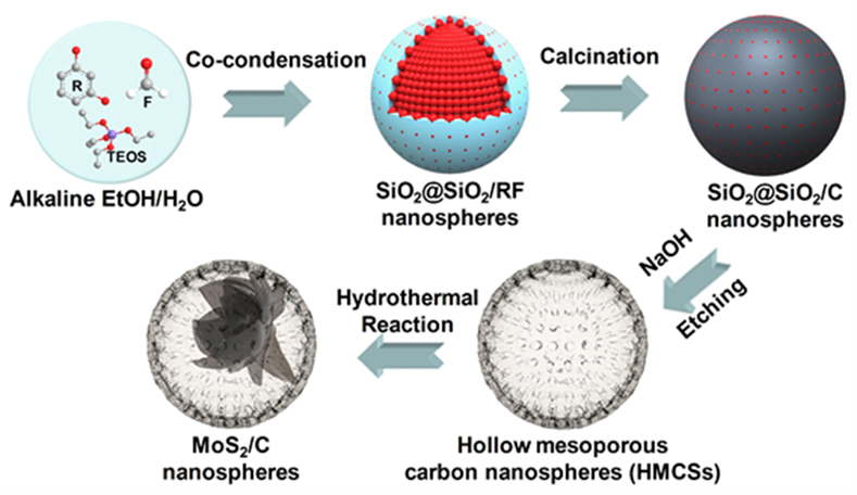 花瓣状硫化钼在空心介孔碳球中限域生长用于增强储锂性能