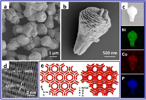 Abstract:Compared to single metallic Ni or Co phosphides, bimetallic Ni-Co phosphides own ameliorative properties, such as high electrical conductivity, remarkable rate capability, upper specific capacity, and excellent cycle performance. Here, a simple one-step solvothermal process is proposed for the synthesis of bouquet-like cobalt doped nickel phosphite (Ni11(HPO3)8(OH)6), and the effect of the structure on the pseudocapacitive performance is investigated via a series of electrochemical measurements. We found that when the cobalt content is low, glycol/deionized water ratio is 1, reaction under 200oC for 20 hours, the morphology of the sample is uniform and has the highest specific surface area. The cobalt doped Ni11(HPO3)8(OH)6electrode presented a maximum specific capacitance of 714.8 F g-1. More significantly, aqueous and solid-state flexible electrochemical energy storage devices were successfully assembled. The aqueous device showed high energy density of 15.48 mWh cm-2at the power density of 0.6 KW cm-2. The solid-state device showed high energy density of 14.72 mWh cm-2at the power density of 0.6 KW cm-2. These excellent performances confirm that the cobalt doped Ni11(HPO3)8(OH)6are promising materials for applications in electrochemical energy storage device.