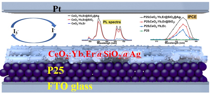 以CeO2:Yb,Er@SiO2@Ag纳米纤维构筑的染料敏化太阳能电池示意图