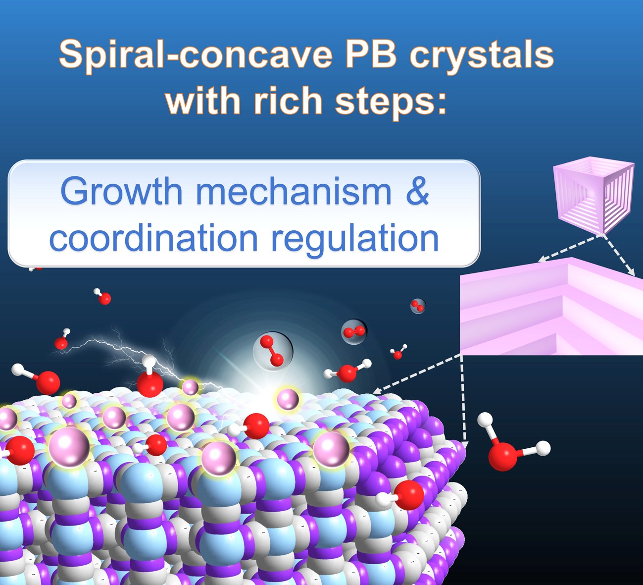具有特殊结构的微纳米材料在多种领域引起了广泛关注。精准设计和调控这些特殊结构(如:螺旋、凹面结构)对于推进创新材料的发展具有重要意义。普鲁士蓝及其类似物(PB/PBAs),如六氰合铁化合物(Fe-HCF),因具有开放的框架结构,氧化还原位点可调,易合成等优点,在能源、环境和生物医学等领域表现出良好的应用前景。但传统的立方体普鲁士蓝因导电性和活性较差,限制了其电化学应用。因此,研究特殊结构普鲁士蓝的生长机制,以及通过自下而上的方法实现其晶体的相位工程至关重要。