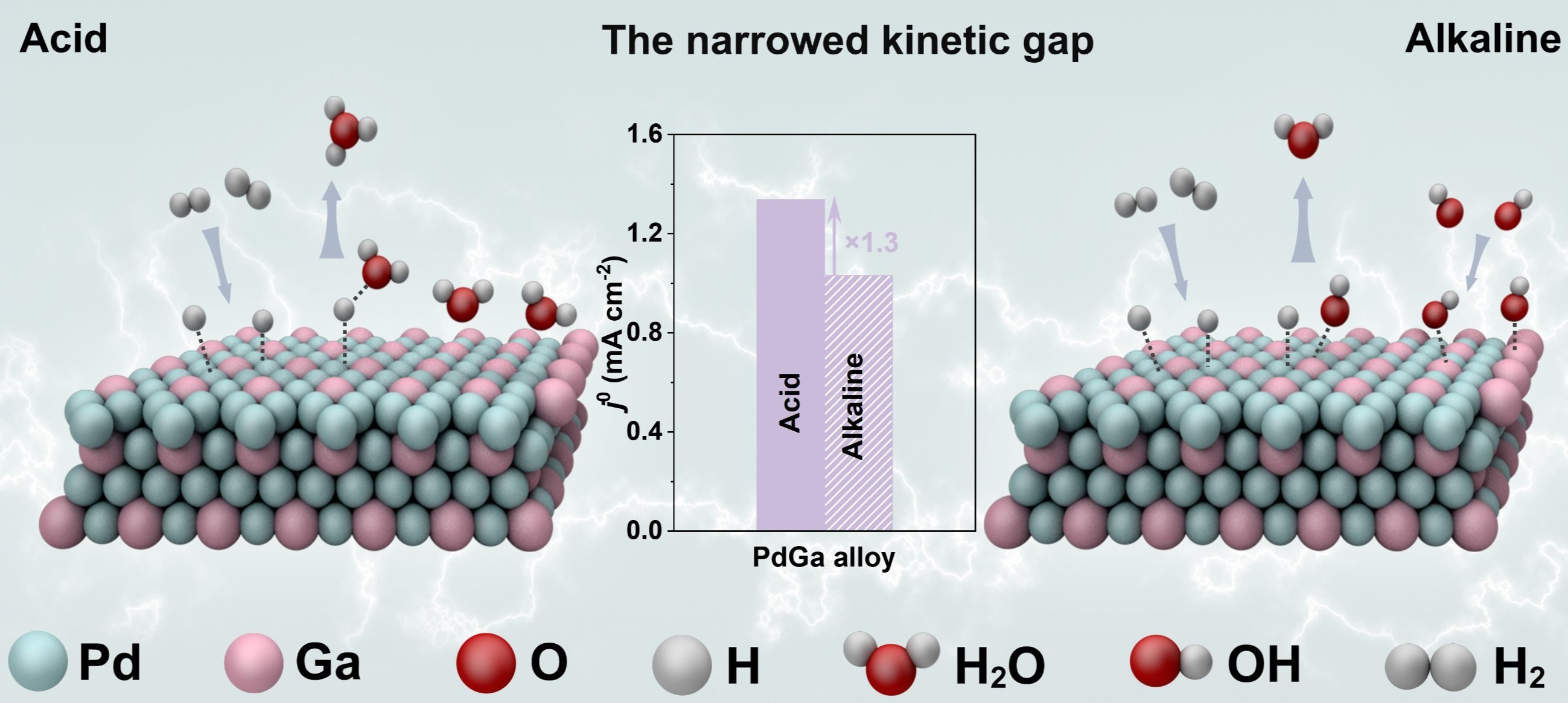在全球能源结构加速转型的背景下,氢能因其高能量密度与零碳排放特性,被视为构建清洁能源体系的重要支柱。其中,氢燃料电池作为氢能高效利用的核心技术,依赖于阳极氢氧化反应(HOR)和阴极氧还原反应(ORR)的协同进行。然而,尽管非贵金属催化剂在碱性ORR中已展现出优异的反应活性,其在碱性条件下的HOR动力学却急剧下降,速率较酸性体系低两到三个数量级。这一“酸碱动力学差距”成为制约碱性交换膜燃料电池商业化发展的关键瓶颈。因此,如何从电子结构层面调控催化剂与反应中间体的相互作用,以实现HOR酸动力学差距的减小,成为当前电催化领域亟待突破的科学问题。