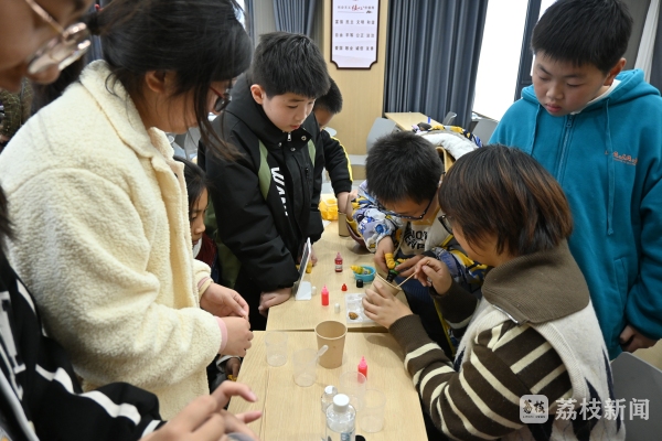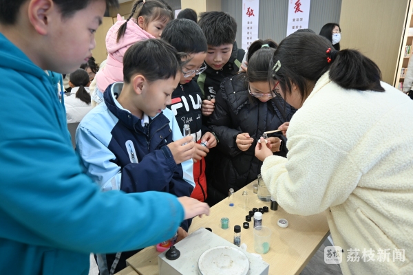 今天(11月29日),记者从扬州大学获悉,近日,一场热热闹闹的化学“游园会”一同搬进扬州市的锦旺社区与兰庄社区。该校化学化工学院青年志愿者们将化学知识通过“展示+互动”的演绎方式,为孩子们提供“家门口”与化学接触的机会,以充满趣味的“游园会”形式,带领孩子们一同探索化学世界的奥秘。