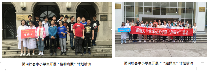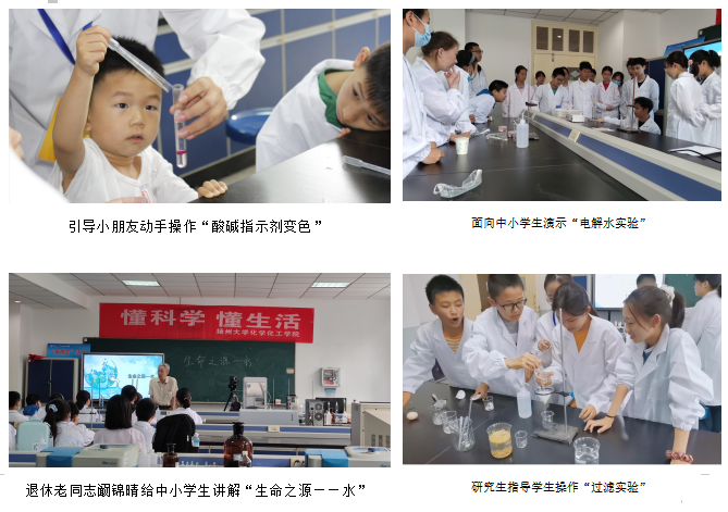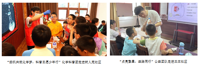 为增强大学生服务社会的意识,积极传播化学学科特色,近年来,学院充分依托寒暑假社会实践与志愿服务,动员学院教师和无数青年学子,将大学生社会实践化为助力科普事业的力量,通过寓教于乐的科普实践活动,让小朋友们、家长零距离感受了奇妙的化学反应,在轻松有趣的氛围里学习了科学知识,激发青少年学化学的兴趣。此外,学院还鼓励和支持退休老同志积极参与科普工作。